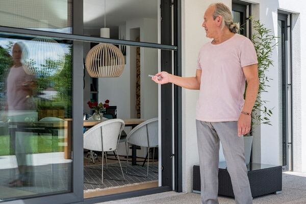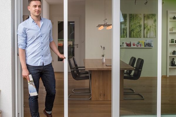 Eine stabile NEHER-Schiebeanlage können Sie mit nur einem Finger zur Seite schieben. Konstruiert für große Öffnungen, kann die Anlage auch mehrere Flügel haben.